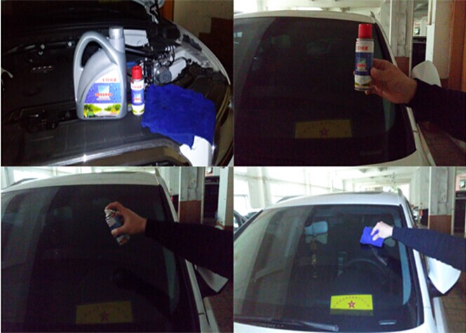 2、把優(yōu)道玻璃鍍晶倒入雨刮壺內,隨時進行噴洗玻璃表面,讓玻璃鍍晶隨時填充到玻璃凹槽內形成荷葉微晶表面。