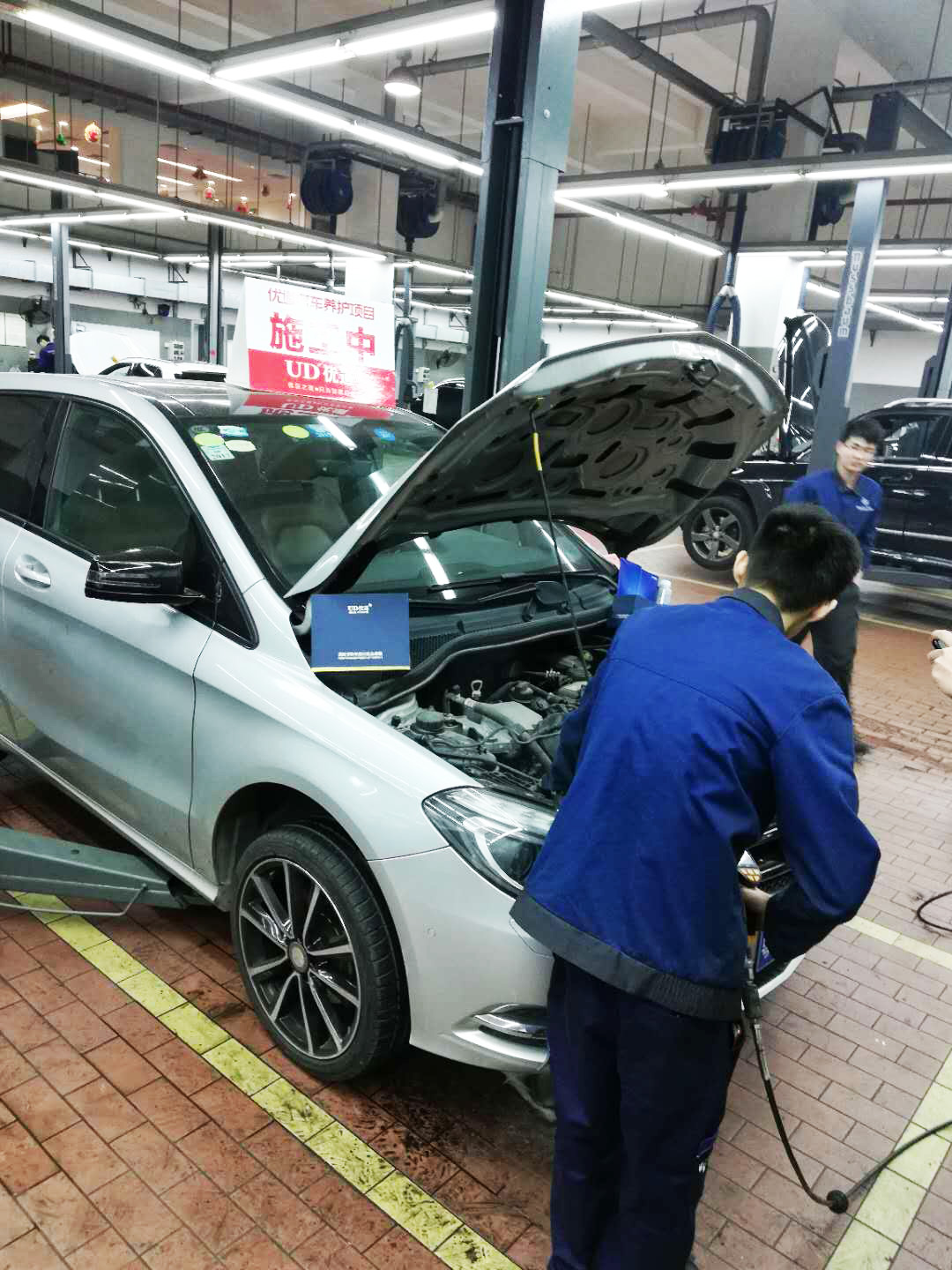 奔馳新B200正在進行優(yōu)道渦輪保養(yǎng)