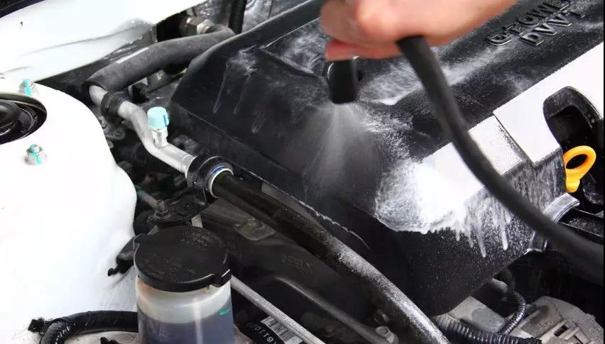 先噴上專用發(fā)動(dòng)機(jī)艙清洗劑。