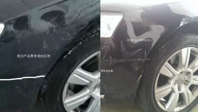 如果刮痕再深一點,部分面漆被刮掉,但沒有傷及底漆也沒有嚴重的變形,我們同樣可以通過K33快蠟來較好地恢復(fù)漆面。通過修復(fù)陳舊漆磨氧化表面,回復(fù)漆膜高度光澤,使漆面與原車漆面一樣光亮。