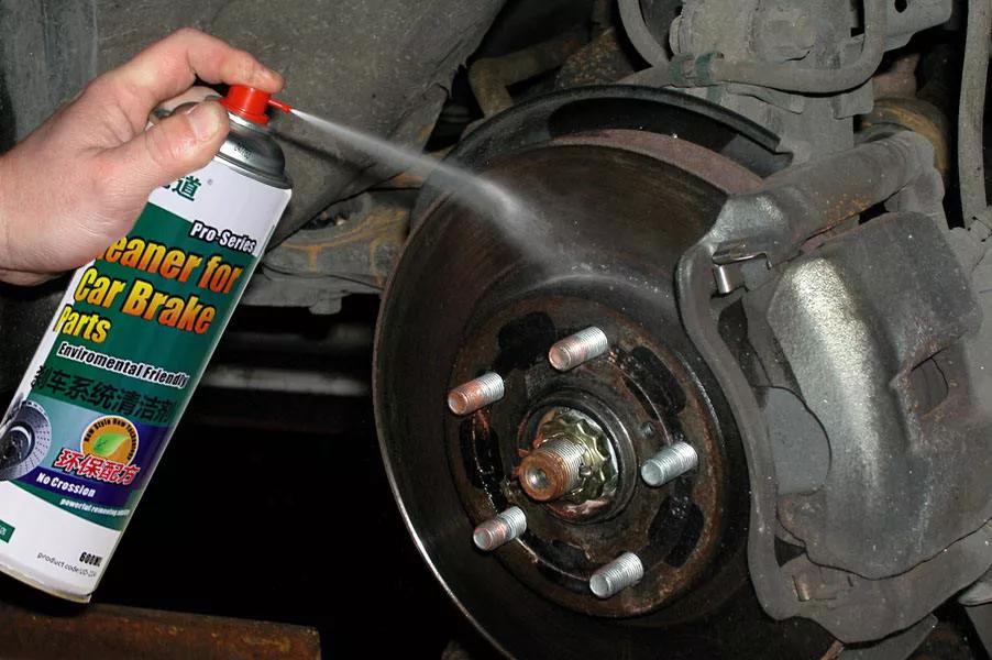 用剎車盤清潔劑清潔剎車盤、剎車片及制動卡鉗、以及輪胎的油污、粉塵、揮發(fā)快、干燥后無殘留、不含腐蝕性成分。