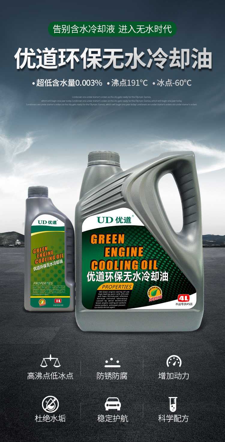 說(shuō)到汽車(chē)防凍液顏色,需要說(shuō)明的是:防凍液補(bǔ)償系統(tǒng)由膨脹水桶和連接到散熱器加水口座上的溢流管等組成。膨脹水桶上方有溢流口與大氣相通,膨脹水桶最低液面高度高出散熱器液面,系統(tǒng)可以使散熱器充滿(mǎn)冷卻液,以便發(fā)揮散熱器的最大散熱功能。汽車(chē)防凍液顏色多種多樣,大家在購(gòu)買(mǎi)時(shí)不需要考慮汽車(chē)防凍液顏色的差別,重要的還是防凍性能。車(chē)主應(yīng)經(jīng)常檢查防凍液是否虧損,除了選好防凍液,在防凍液的使用過(guò)程中,廣大車(chē)主還需要注意以下的方面:2.防凍液的有效期多為兩年,添加時(shí)應(yīng)確認(rèn)該產(chǎn)品在有效期之內(nèi)。3.必須定期更換,一般為兩年或每行駛4萬(wàn)公里更換一次。小編提醒:防凍液直接影響汽車(chē)的性能和使用壽命,最好在四季都使用。如需購(gòu)買(mǎi)汽車(chē)防凍液,要選擇正規(guī)品牌產(chǎn)品。以?xún)?yōu)道無(wú)水冷卻油為例,該產(chǎn)品采用了專(zhuān)利抗氧化配方,承系美國(guó)動(dòng)力科技,并參考德國(guó)國(guó)家實(shí)驗(yàn)室冷卻劑抗腐技術(shù),由高級(jí)多元醇,抗氧劑,防氣蝕劑等多種添加劑精制而成。沸點(diǎn)高,冰點(diǎn)低(工作溫度-60℃~191℃),導(dǎo)熱性強(qiáng),控溫性能好,對(duì)金屬不腐蝕,不產(chǎn)生水垢,大大提升發(fā)動(dòng)機(jī)的使用性能。顯著的經(jīng)濟(jì)型,降低油耗,減少維修,提高效率,一次加注,終身使用。