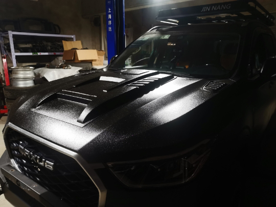 這是一款大通d90汽車改裝防爆犀牛漆的案例,光澤感十足霸氣側漏!效果很好,硬度質量都杠杠的!
