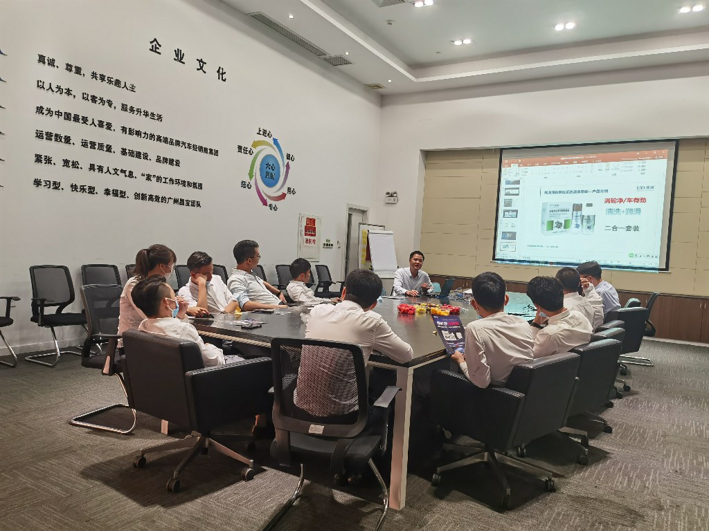 在寶馬4S店內(nèi),優(yōu)道導(dǎo)師張導(dǎo)為店內(nèi)全體員工介紹了優(yōu)道渦輪增壓系統(tǒng)清洗項(xiàng)目