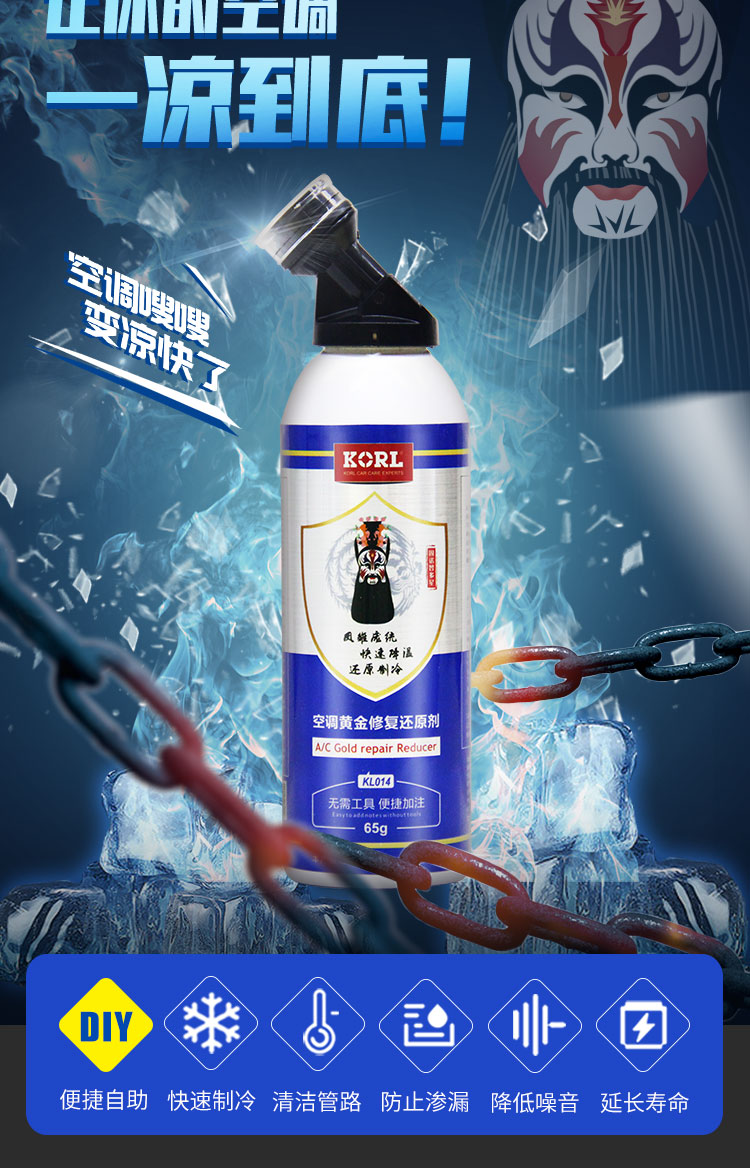本產(chǎn)品是一款汽車空調(diào)系統(tǒng)制冷多效修復(fù)劑,含有低溫流動(dòng)性的特殊活性潤(rùn)滑分子,能夠在汽車空調(diào)制冷不良、壓縮機(jī)噪音增大等情況下,迅速恢復(fù)制冷性能,增加壓縮機(jī)潤(rùn)滑,增強(qiáng)金屬抗氧化能力,降低空壓機(jī)運(yùn)轉(zhuǎn)噪音,延長(zhǎng)壓縮機(jī)使用壽命,降低引擎負(fù)荷;并含有熒光檢漏劑,是一款可方便快速檢測(cè)空調(diào)系統(tǒng)泄漏的多效養(yǎng)護(hù)產(chǎn)品。