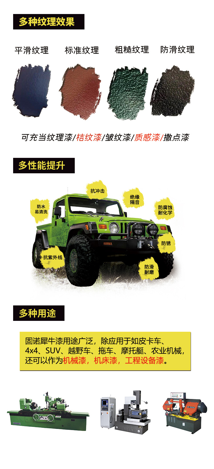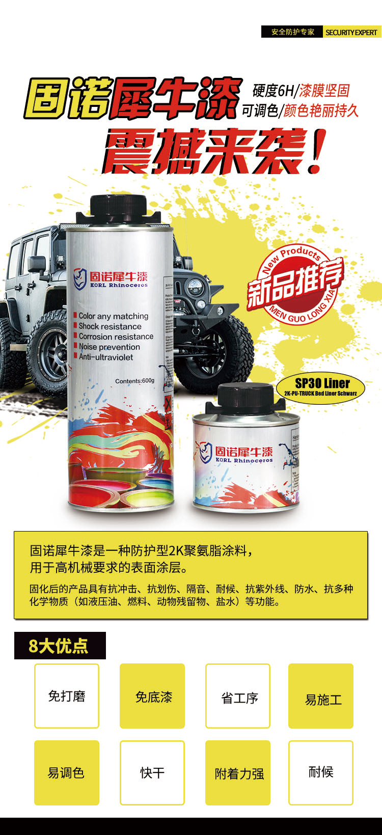 固諾犀牛漆是一種超高硬度耐磨防腐抗UV涂料,目前廣泛應(yīng)用于船舶、汽車、工業(yè)、商用等領(lǐng)域。
